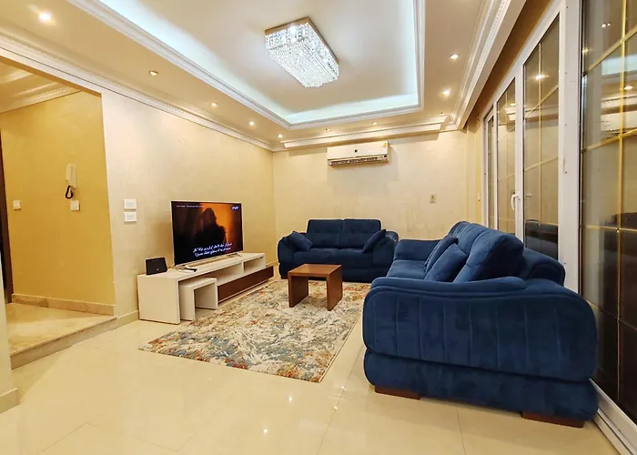 The 146 m² Luxury Furnished Flat In Rehab New Cairo Apartment is located in Cairo, merely a 7-minute walk from Al-Rahman Mosque, and boasts a Jacuzzi. This 2-bedroom apartment features Wi-Fi in public areas.
