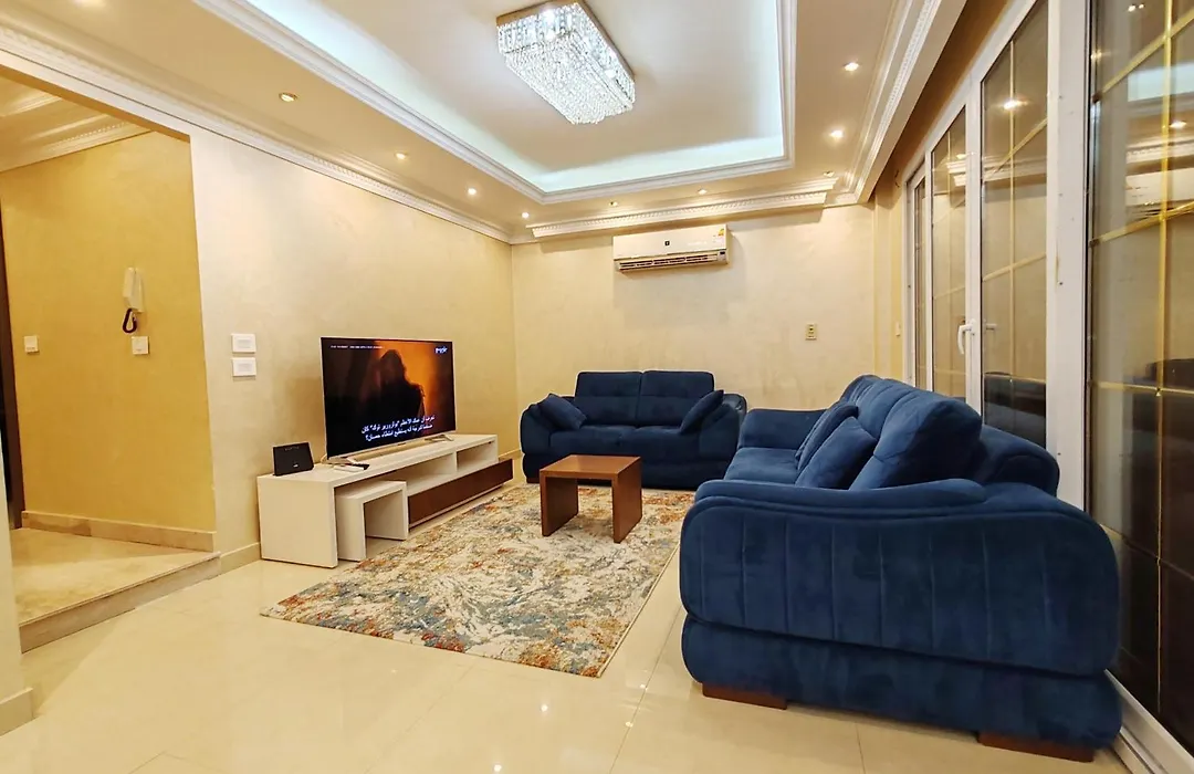 El establecimiento cuenta con una terraza, una zona de estar y una cocina, y comodidades como climatizador. El apartamento ofrece 3 dormitorios. El Apartamento Luxury Furnished Flat In Rehab New Cairo incluye 2 cuartos de baño. Además, dispone de un bidé, una ducha a ras de suelo y una bañera de hidromasaje.