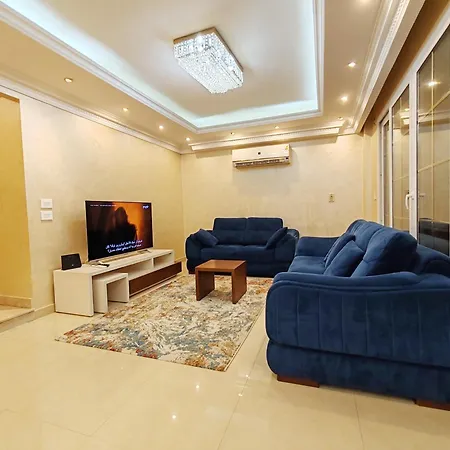 Hay una cocina bien equipada equipada con una nevera, un horno y una placa de cocina. El Aeropuerto El internacional del Cairo es accesible en 25 minutos en coche.